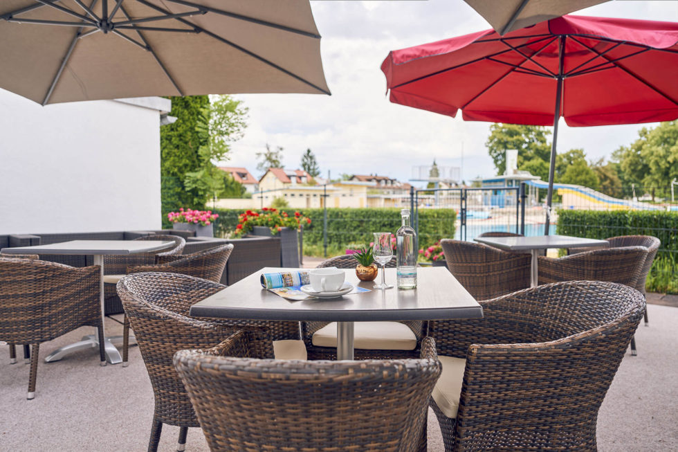 Machen Sie es sich in unserem stilvollen Frühstücksraum oder auch auf unserer Außenterrasse gemütlich und genießen Sie jeden Morgen von 07:00 Uhr – 10:00 Uhr unser reichhaltiges Frühstücksbuffet mit bestem Dallmayr-Kaffee.